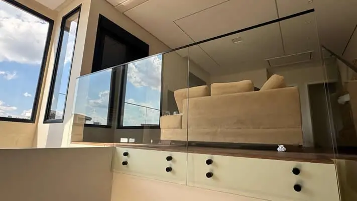Segurança e design para escadas, sacadas e mezaninos. Um visual clean e moderno para sua casa ou empresa.